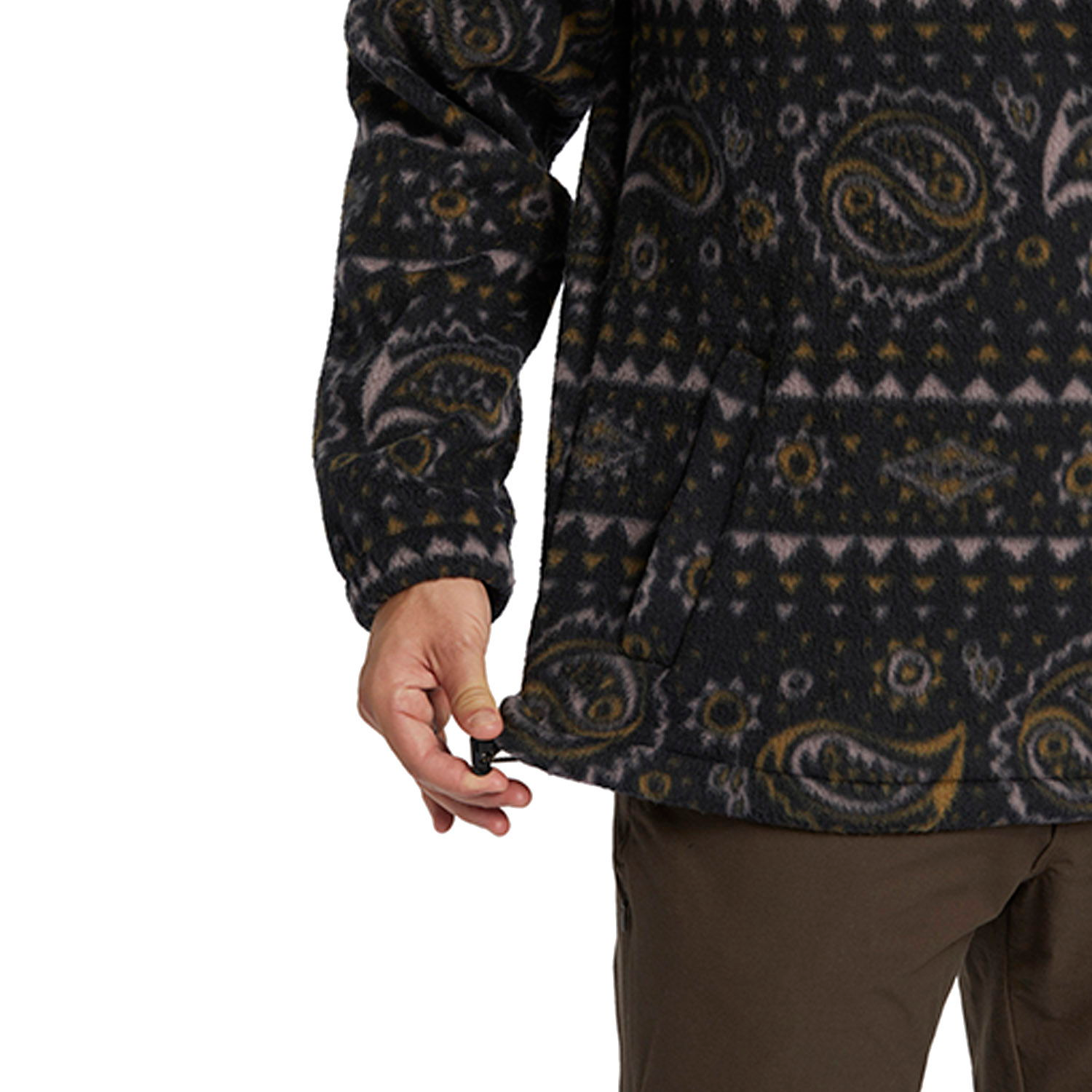 Adventure Division koleksiyonundan olan bu polar sweatshirt, geri dönüştürülmüş polyester ve polyester karışımı kumaşıyla hem çevre dostu hem de rahat bir tasarım sunuyor. 300 g/m² yoğunluğunda polar kumaş ve geri dönüştürülmüş PET şişelerden elde edilen 4 yönlü streç performans kumaşı ile tasarlanmıştır. Uzun kollu ve yüksek yakalı tasarımıyla soğuk hava koşullarında ideal bir katmandır. Lastikli bungee kordonlu bel kapaması, kullanıcıya ekstra konfor sağlar. Fermuarlı göğüs cebi ve kanguru tarzı cepleri, işlevsellik ve stil katar.